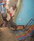 Astrid came into her own here with a project involving recycling plastic bags. With no garbage collection, Mali like much of poorer Africa, is drowning under discarded plastic bags with much of the urban open space looking like a garbage tip. Astrid got the kids to join her in collecting bags, and then taught the new brothers and sisters and the older kids how to twine them together and weave them into furniture upholstery- the younger kids eagerly waited at the door of the `office' of the school to pass their collected bags to Astrid and her eager team of newly trained helpers: