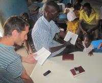 For a long time now we've been in contact with Gerald, a young man from Burkina who works in Bamako, Mali, as a teacher at a small primary school. He's worked through Bible Basics and has it and our other publications in French ever on his desk at the small `office' at the school, where he lives and sleeps on a mat on the floor after school. Gerald has a true heart for people as well as for Christ. The `School' is just three classrooms, and was founded by a Frenchman named Damien. Damien has a most unusual story. An electrician from near Nantes, in France, he was a rally driver in the various treks across the Sahara from Spain to the ports of West Africa which are widely popular amongst adventurous young people in France and Spain. He took a liking to Mali, sold his car after one trip and remained in Mali. Here he married a Malian woman called Fatah: