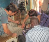 The hotels in Bamako wouldn't let us use their pools for baptisms, hence our trip to the very polluted and disease-ridden Niger River. One good thing is that through this new ecclesia, the Gospel is spreading yet further to the ends of the earth- "and then shall the end come". We conducted our meetings in French and the local language, Bambara, and made MP3 recordings of them. There is very little Christian literature of any description in Bambara. At the baptism service, we recorded Damien reading Romans 6 verse by verse in French, and Gerald translating it verse by verse into Bambara. We will in due course put the MP3 on the carelinks.net website. This is really taking the Gospel to "the regions beyond", to those in the Sahara who have never had the Gospel in their language. Here's the recording being made: