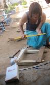 Astrid and Damian have subsequently taken the idea forward, constructing a loom with wood, nails, a hammer and string, upon which the plastic bags can be woven into yarn, and are teaching some amazed local people just what is possible: