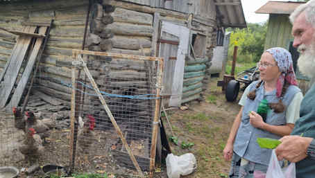 We made a quick visit to brother Igor and sister Nina and her mum sister Vera. Vera was in an old folks' home but was moved out to make space for handicapped wounded soldiers. She was effectively made homeless by the state so she went to live with her injured daughter Nina, who herself lost her home on the Ukrainian-Russian border and was given a derelict house to live in very far from anywhere. There is now no bus service anywhere near her. The Military Police came even to that remote place pressganging men into the army. One young brother whom we had previously baptized was thus taken, given a few weeks training, sent to the front line and within weeks had been killed... now asleep in Christ. Her husband brother Igor had heart issues but they ignored them. During his military training he had a major heart attack and was released... but it's so hard for them to make a living from subsistence farming. Of course we gave food and cash welfare but their long term situation is very bleak.