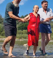 We have spoken in previous reports of the growth of a group of Jewish believers whom we've been baptizing one by one. Based around sister Svetlana, who was originally from a front line area. Her home was destroyed and she is now with her adult children in western Ukraine, living in a once derelict house with quite a bit of land [which had gone wild]. She's cleared much of the land and sown it with various fruits and vegetables. Her industriousness is amazing. She also has goats and chickens. Pensions are tiny or not paid, so it's a case of being thrown from an urban lifestyle into subsistence farming. And she has done admirably. This time it was our joy to baptize her mother LIDIA and a friend she had met at the synagogue where she is OKSANA. Her neighbour where she once lived, Ludmila, also wanted to be baptized. But the day before we came she got news that her house had been hit and burnt down and her son had been killed. This has distracted her from getting baptized. Let's pray she somehow pulls through. Svetlana is just amazing in her knowledge of the Truth and devotion to the things of the Lord Jesus. She has a very clear understanding of all doctrines. She does sometimes go to the synagogue where she is and discuss with the Rabbi as she says he has a great knowledge of the Old Testament and is open to discussion. Whilst debating with him about the meaning of the sons of God who married the daughters of men in Genesis 6, she met Oksana who also attended the synagogue. Oksana is from a long established local Jewish family, who had first come to Ukraine centuries ago when all Jews were banned from living within a certain radius of Moscow, and many settled in Ukraine just beyond that radius- this is where the phrase "Beyind the pale" comes from. Oksana was very attracted to our non trinitarian approach and has accepted the Lord Jesus with her whole heart. Such an hour to baptize her, further down the river from where we baptized Lidia. Let's pray this very small movement amongst Jewish folks in Ukraine becomes ever stronger, as the repentance of Israel is definitely significant in God's timetable.