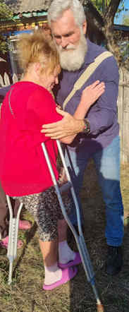 Duncan writes that Mike has been a great, spiritually minded companion in the work, and that he has just the right skill set. Not only with his first aid and fireman skills but also giving advice and relevant encouragement to all those we met who have lost their homes and are now living pretty much off grid in previously abandoned or derelict homes and trying to survive on what they can grow. Mike and Betty also live relatively off grid in rural Queensland, and Mike was able to advise how to use various herbs and even weeds for medicinal purposes, what is best to feed goats and chickens with etc., showing folks how to identify wild jarrow and use it. He has a wealth of knowledge about these things that suddenly became relevant to former urban dwellers who are now having to get food from the land around them, and are often far from any medical attention- in a country whose medical service pretty much only offers emergency medicine to civilians, due to the war: