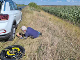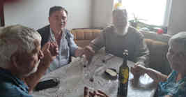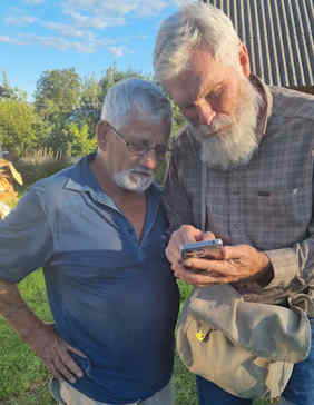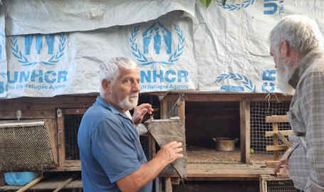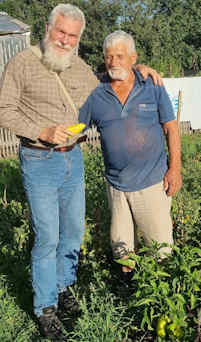 Nana and Lyehsa were baptized by us many years ago, and like Svetlana and so many others, they have lost everything- their flat, car, livelihood etc. as they fled from an area now occupied by Russian forces. Lyesha says he has heard that their home has now been given or sold to a Russian who is now renting it out. And he muses as to who is now driving his car. His adult children and grandchildren have suffered terribly. Nana's son was at the front and badly wounded, has been in hospital, but has been sent back to the front. His wife now lives with Nana and Lyesha. Nana and Lyesha literally walked across the actual front line to escape, finally reaching Ukrainian held territory on Nana's 70th birthday. Their hard work is just amazing. Thanks to your support they have rebuilt the derelict house they were given to live in, put up fences, made enclosures for rabbits, ducks and chickens. They as urban dwellers found the need to survive drove them to abilities and talents they never thought they had. It's just that they're in their 70s and located so far from anywhere. After a great meal from what they had raised themselves, we broke bread. They have staying with them an old school friend who has been bombed out. Everywhere we went we met people who had suffered first hand from the war. Truly the only light in all this darkness is that of God's grace in the things of His Son and His Kingdom. Again, Mike was in his element both learning and advising about such off grid living.