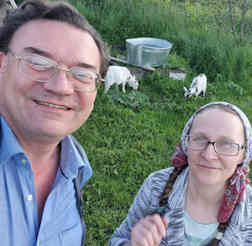 The highlight was meeting with SVITA, a Jewish woman who had come to faith in Jesus as Messiah and for some time has been an extensive user of the Bible Companion app. She has seen through the common errors of the popular churches, and come to total agreement with all our doctrines. She has made a herculean effort to become self sufficient, clearing land, growing crops, and now eagerly planting various vegetables as seedlings in her kitchen, now to transplant them outside to make the maximum use of the growing season. She's discovered some overgrown cherry and pear trees which she's looking to harvest later in the Summer, Lord willing. Her latest addition is two young goats, just off milk from their mothers, and eating their first grass outside in the yard: