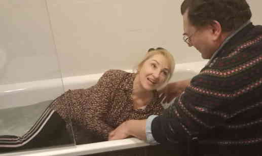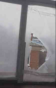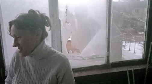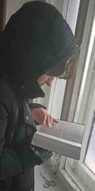 and you can see her there reading her Bible by torchlight and using what little daylight there is; she has only 2 hours of electricity per day and no heating so wears her outdoor coat all the time. She has been using the app a long time and fully shares all our doctrines. She is in an area previously occupied by the Russians. Her block of flats was hit by grad missiles, shattering the glass from her windows. Her very elderly father repaired them for her as best he could. But then a mine went off in the yard and shattered them again. She has tried to fix them up with clear cellophane and sellotape, but as you can see, this has now ripped. The wind makes quite a noise. As the temperatures have been -20 and are set to go down there again [you can see the snow on the ground in the photo], this makes it very cold for her. I left funds to try to get them fixed. Notice the scissors still on the window sill, but sellotape and staples aren't really effective. You can see the very very humble situation she lives in and in which the baptism was performed
