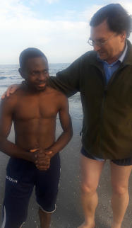 Our brother had promised that if God saved him from the water, he would give his life to God's service. And indeed he has done so. He runs three WhatsApp and Messenger groups, with about 50 Africans in each, and he has urged them all to download our app. He uses it every day. You can see a video of brother Simon explaining some of his story, and of the baptism in very cold sea water, at https://youtu.be/Any7wp-HWHo