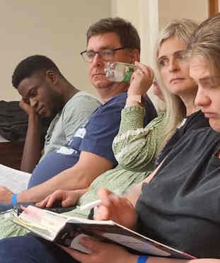 There were baptisms in the on site swimming pool, of IAN, SAMANTHA, BRENDA and CELESTE. Sister Astrid was just amazing with the children and young people- Bible studies and outdoor activities on site. The discussion groups were animated and went on over time... and people connected with each other, from such different backgrounds... Council Estate girls, a retired Air Traffic controller from Manchester airport, and the usual mix of ethnic backgrounds you have in London. A huge range of birthplaces... Ghana, Nigeria, Australia, Jamaica, Greece, Trinidad, Switzerland, Rhodesia Zimbabwe, South Africa, Latvia, Poland... along with a lot of true cockney Londoners. Great table tennis and snooker in the hall... North London vs. South London... Marshmallows around the fire on the Saturday evening... The Hookwood ecclesia kindly provided a catering team so our visitors could focus on spiritual food rather than having to spend too much time on preparing our natural food. We're so grateful to everyone who made this such an amazing success. And to the staff of Carrotty Wood [a Christian organization] for letting us use their pool and being so supportive. A few dramas at the end as all water was cut off to the site and local area on the last day... we bought up what water was left in the supermarkets, all carbonated [sparkling] water as that was all that was left for sale. And had to mop the floors and wash up for the final meals with that.
