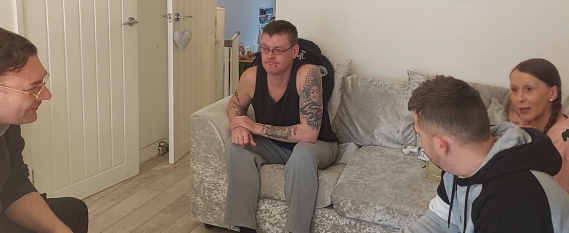 Here you can see Edd at his door, which is open to so many in the neighbourhood to chat and learn the Gospel; and our new brother Nigel walking around the corner [in the white sweater] to his place.