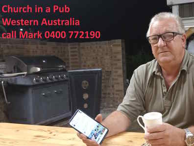 Church in a Pub" meetings held in the city of Perth and the small rural settlement of Kellerberrin WA [population 800], about 3 hours drive inland from Perth where sister Jocelyn lives.