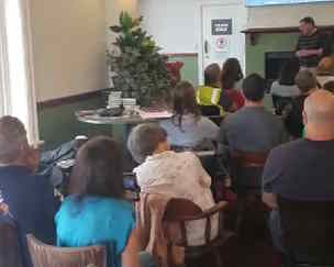 Church in a Pub" meeting. Yes we offered and provided free food- but people stayed a long time chatting and weren't overly interested in that. They didn't come for the food, that was clear. They stayed chatting for so long. Many had tales of woe from previous church experience. All said they loved it and it was what they really wanted. Naturally they asked "And is this going to continue?". Brothers Brian Hurn and Paul Smith wore visibility vests and were the "go to" points of contact for people to leave their name and phone numbers. Mark is now setting up regular meetings at the Gosnells Hotel ["the pub"] for every Sunday.... do pray for these dear people and this amazing response to continue and gell into a solid church. People are tired of pastors manipulating for power and money, they want Bible teaching, they want transparency and integrity. And we can definitely give that. The video of the sermon, on Luke 15 the parables of the lost and why the Lord ate with sinners, is at