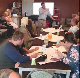 We had to draw proceedings to a close to drive 3 hours to the small town of Kellerberrin [population 800] where Lisa's mum, sister Jocelyn, lives. We had likewise advertised the meeting with Facebook and Google ads. Given the small population of the town and surrounding rural area, we were also blown away by the response and level of interest expressed online. We had 15 of us in the Kellerberrin Motel ["pub"], where we did a church meeting for an hour and then shouted them a meal. There aren't many people let alone serious Christians in these distant rural areas. One young married couple came with their children, and said they drive an hour just to meet up with any other Christians for Bible study. Again, folks really liked it.