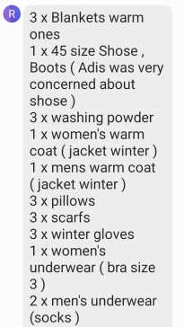 We are buying second hand jackets and clothing, but shoes, socks etc. are very hard to get second hand. Unlike in western countries, there is very little state support in this time of economic and social collapse.