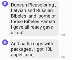 LATVIA We continue distributing welfare and trying to care and preach to those who used to attend our meetings. Pleased to announce the baptisms of ALEKSANDR and ANDRIS this week.