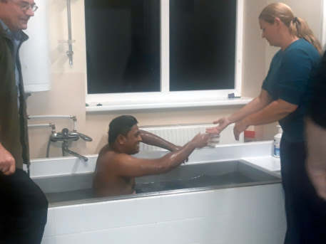 On Sundays we hold meetings in English only, and are enjoying a really good attendance of mainly younger folks, typically masters students at the university here, often from India. This week we were pleased to baptize RAJEEV,