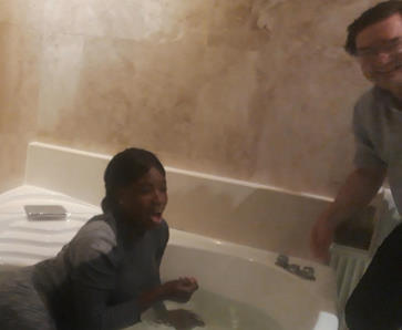 We baptized her in a hotel bath tub, and then had great fellowship over a pizza: