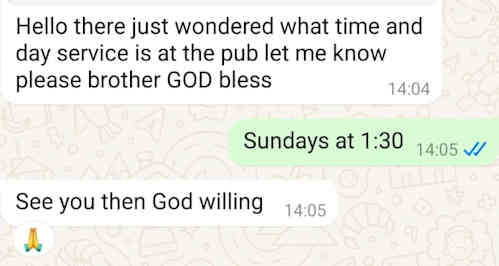 Croydon Church in a Pub, March 21-23 Lord willing, at Carrotty Wood Centre, Tonbridge, Kent. Do come along and spread the news. We are open to your donations to meet the shortfall there will be- we urge all our contacts to come and put what they can in the collection box, but there will be a shortfall of up to £2000.