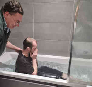 This week we baptized PADDY, yet another one to be baptized in the bathtub in South Croydon which has now seen a few hundred baptisms over the years. It was great that Paddy's wife wanted to be present online, so Paddy set up his phone so she could view it live on WhatsApp... you can see us just checking she was online. Technology really is such a blessing when used rightly.