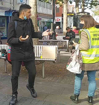 We've also been out on the streets in both Croydon and Brixton, distributing New Testaments. We returned to our old haunts in central Croydon to offer New Testaments to folks. Wearing the "Free Bibles" visibility vests is definitely the way to go- people were continually coming up to us asking for one. And some good conversations too.
