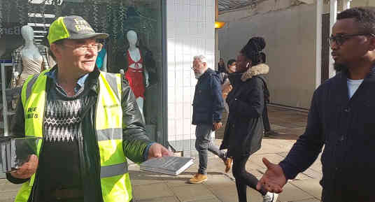 You can fit the captions to the photos: "I'm a Muslim, how am I allowed to take a New Testament!"; "Oh... yeah, I've been wanting to look into Jesus and all that"; "It's free? OK, yes, I will read that"; "I have a friend who really wants a New Testament, can I have one for her?"; "God bless you kids". The seed is being sown for sure. Ordinary Londoners are willing to talk and engage, as you can see from the photos. Let's pray more respond.