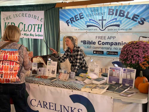 And there's great news from Carelinks Canada. Brother Jim Barton reports: "This past week (Sept. 18-25) my wife Anne and I hosted a Bible outreach booth at the "International Plowing Match and Rural Expo" ("IPM") held in Kemptville, Ontario. This is the first post-pandemic IPM so, it seemed the volume of people may have been a bit lower than in previous expos but still the show managed to have good attendance amidst some cool and rainy days.
