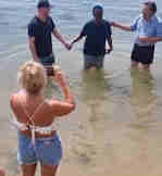 Croydon Church in a Pub had a bit of an outing to Southend on the River Thames estuary this week. A really lovely, truly spiritual time to the glory of the Father and Son. Bible reading, singing praise together and just hanging out with each other in the sunshine. And we baptized brother Zak's younger brother and sister, TERRY and CODY, along with our friends GLADYS and ELAINE. Elaine has a single tattoo that simply says "Pray for me". Like so many, she had been quietly in search for God for a long time. This was very much a great day for Brother Zak. After his baptism a while ago, he gave NEV Bibles to his younger brother and sister, whom he had effectively raised himself through a difficult childhood. They are now 19 and 21 years old and yet again, typical of young British people who are following their conscience toward God and had wisely turned to Bible reading to find out more about Him. But again... and it is said again and again by these young British people we're baptizing these days... standard church just wasn't helpful to them. But thanks to Zak patiently teaching and encouraging them, along with their own reading of God's word... they came to baptism. It was such a joy to go into the water with Zak and baptize his younger brother and sister. We ended up with quite a crowd of the general public observing us, many of whom clapped as the candidates came out of the water. We gave them all our small calling cards, advertising Croydon Church in a Pub, and urging them to download the Bible Companion app to study Bible Basics. The blonde lady in the photo was a passer by absolutely fascinated by what we were doing and enthusiastically videoed it and asked questions: