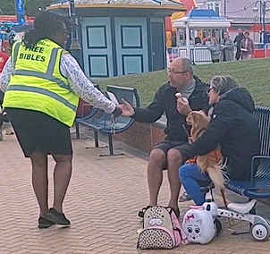 And now she went out with us on those same streets distributing New Testaments. She was just so happy. She named her daughter Darwin in honour of Charles Darwin, and raised her as an atheist. But now she has come to the Lord Jesus, and Darwin is now 22 years old. Do pray that Darwin too makes this huge change. Again we see the power of the Lord, even in urban Wales.