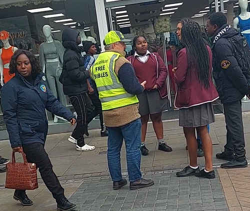 This has been a great week for the Gospel in the United Kingdom. Mark Hawkins from Perth, Australia was able to come out and distribute Bibles in Croydon and was impressed with the interest. He has a great way of chatting with the many interested folks- Video at