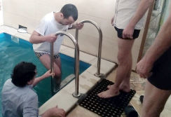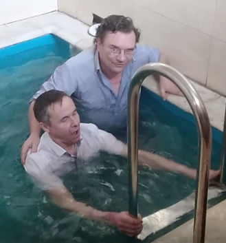 We hired a sauna, about the only one in the area. It had a hot steam room, and a very deep plunge pool- which was really freezing cold. The rehab center had no facilities for baptism, being in a large wooden building which had been derelict. After Bible study, prayer and discussion, we went into that freezing water for the baptisms, and then shut ourselves in the hot room to recover. There were hats to wear to protect our hair because it was so hot. As we sat there in that hot room... there were some great comments of true appreciation from these men who had been through awful experiences, to come to Christ and the things of the Kingdom in spirit and in truth. We praise God for His working, in such an obscure and humanly forgotten area, to "make up His jewels" and bring more to His saving plan.