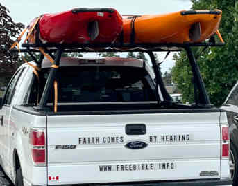 Pleased to report the baptism of VLAD one of our Russian speaking contacts. And brother Tim Anderson shares a story of what one would call being ready to preach "in season, out of season" using the Bible app adverts on his vehicle, whilst on vacation in Canada: "The Gentleman in a truck put his window down at a light in Brampton Ontario and commented on my tailgate message. Had time to explain that it was a phone app that takes you through the Bible in a year, and it was free. He asked if he had to buy the book, I said nope the whole Bible was on the app. I told him remember freebible.info and he repeated it to me. The light changed and he thanked me and drove off. You never know!".