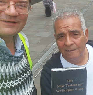 Meanwhile, Croydon Church in a Pub goes from strength to strength. We're now up to full capacity there. It's been an amazing thing to see the bar packed with people and every chair and stool in the pub taken. We never thought we'd see the day when local British Londoners were sitting on the floor genuinely interested in hearing the Gospel. You can follow our activities on the croydonpubchurch Facebook page. One attender at Church in a Pub is 75 year old Spiro. He has a most interesting story. Despite being an elder of a local church, he figured that trinitarian baptism was wrong and rebaptized himself just into Jesus. For that, he was cast out of the church. Since then he has been alone but is so excited to meet us, and we likewise with him. He's been coming with us distributing literature in central Croydon. And what a great preacher he is, a truly wonderful person. You can see him telling his story at