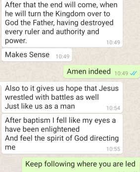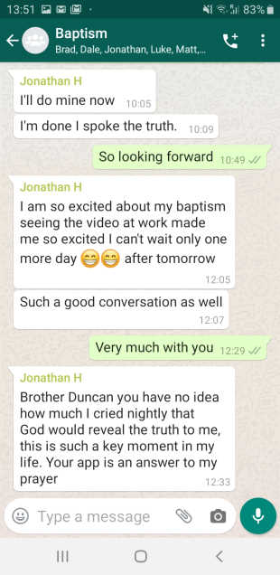 WhatsApp group for him and others in Australia and there were the most wonderful exchanges on it. Jonathan got up at 4 a.m. the day of his baptism, simply so excited. Here are some clips from the exchanges: