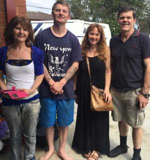 Further north in NSW, again after lots of phone chats and email exchanges, brothers Brad Lawson and Dale Smith from Lismore got up early and drove down to the coast to meet and baptize MARK, who had likewise grasped the Truth fully and clearly from the app. They arrived at the beach to find it closed with a storm and heavy backwash, so they found a river, and eventually performed the baptism in a river overflowing with flood water, and then broke bread. And here's one of Brad and Dale having a breakfast together on the trip: