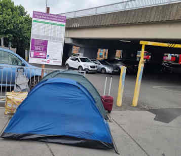 We continue feeding and teaching the Bible to all kinds of people at our lunchtime meetings in the week. We showed photos before of how some of them live beneath the Croydon flyover, but were forcibly moved on from there by Council contractors and had their tents removed. They have put them up just outside the car park- but on the pavement. So, these tents have again now been removed. All so hard: