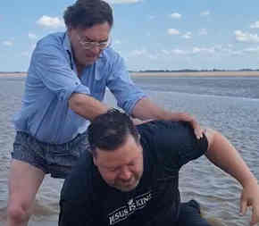 Daniel and David accompanied Duncan on a visit to our online social media "followers" in Yorkshire this week. A huge amount of driving, with the boys on best form and actively involved in discussion with everyone we visited. We met a long term contact in Hull, CRAIG, who has been in touch with us really a long time. His kind mum came with us to the baptism and bought us ice creams... and watched us struggle with the very muddy water of the mud flats beneath the Humber Bridge where we baptized Craig in the River Humber. It was so muddy and we kept sinking down into the mud; there is quicksand there. His prayer of thanks after the baptism was wonderful, lifting his eyes to the skies and thanking the Lord for having worked in his life for so long and leading him to baptism.
