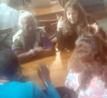 and Jackie chatting over lunch to Debbie about her amazing conversion to God and the Lord Jesus- after many years of atheism and scepticism about church, at