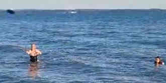 Afterwards they did what they usually do on the beach, all good British fun down at the beach in the Summer. Forgetting the polluted water [this is near Portsmouth...] they swum together, played with the water pistols they'd brought along, and played with the frisbee in the water: