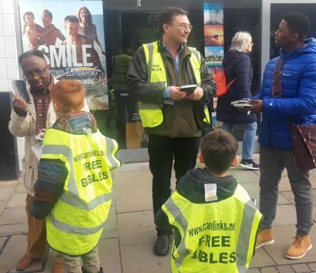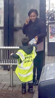 Meanwhile in Croydon, we had wonderful sessions on the streets on Christmas Eve and then on Boxing Day. Hundreds of New Testaments were given out and we had some long chats with folks. The High Street was packed with shoppers on both days- Christmas Eve shoppers, and then Boxing Day Sales attracting others. There was an unusually enthusiastic takeup of God's word. People were coming up asking for them, and at least two offered to donate or pay for them.