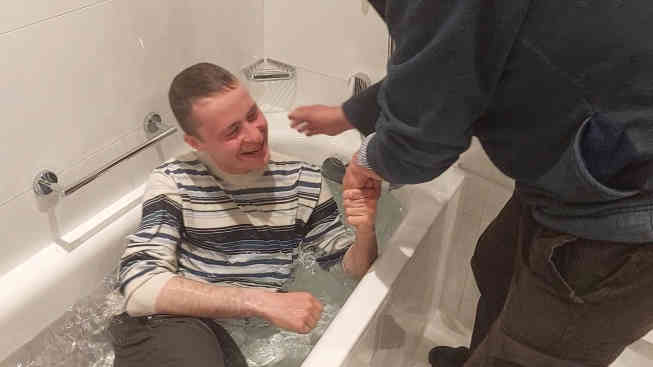 We were so happy to baptize CALLUM at the stunningly beautiful waterfall at Warleigh Weir near Bath, with local brethren [Phil , Steve Sue] in attendance. Callum gave an amazing personal testimony which although lengthy is so stimulating to listen to- see