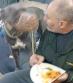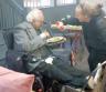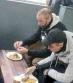Other highlights later this week were that thanks to the efforts of our wonderful Shay, dear brother Glen got his dog Grace back from the Police, and now we got him a muzzle, Grace can come with him again to meetings. And got a warm reception from everyone. And then there was Sue's birthday, a warm celebration for her, after months of quietly serving food over the counter, we so appreciate her. So, joy and unity of the Spirit all round, the joy of faith in the Lord Jesus as our precious and only Saviour. We continue feeding up to 50 people / day at Lunchtime Church, and more are considering baptism. You can see Corinne, Sue and Cis serving the food [prepared by Shay] and then Corinne adding salt to Ian's meal, he comes in his wheelchair, and we're so pleased to have his maturity.