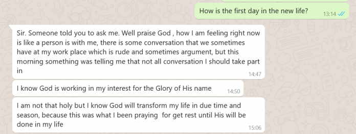 Bible Basics course on the app. Here's an earlier email: "I want to be great ful to the ALMIGHTY GOD for this app, and to you for God had used you so Greatly in our days. I been using the Bible app for more than six months, praise God that I am getting used to it; not only the Bible but also the entire app which I am studying and the website attached to the app . I wish to be baptized in the name of Jesus". And so began lots of contact. Our new brother was very worried about the fact he works in the rum distillery, as he feels this isn't Christian to do so. You can hear a wonderfully heart breakingly sincere message from him enquiring about this at