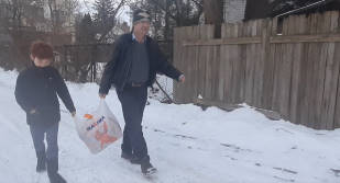 LATVIA Food distribution continues, as does the lockdown, and as does the very long Winter- more heavy snowfall this week. All very difficult and depressing for so many. Here's some food being taken to a sister who is bedridden in a room in a very delapidated building, but with a radiator for warmth at least: