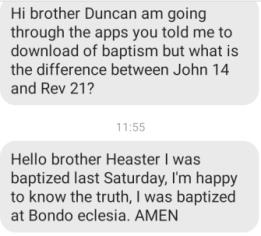KENYA It was some time ago that KEVIN contacted us from Kenya, saying that he didn't really know God, and wanting to be taught. He downloaded the app and worked through it, and has just been baptized at the Bondo ecclesia. Here you can see our new brother with his firstborn child: