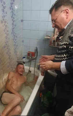 Sister Lena is in a similar position, but her son brother Lyesha is able to help her. And we were able to baptize a contact in Lyesha's bath tub, ROMAN. He has only one functioning arm which is strong as iron from his work as a porter in the market - although his disability saves him from the draft.