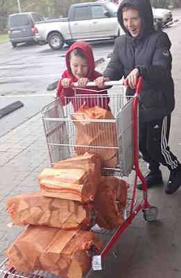 And then there was the purchase and distribution of firewood, including a brother and sister whose house literally has no front door and was just freezing inside. The boys got well into the work of buying, loading and delivering, see the video at
