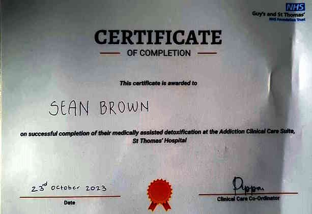 Meetings in Coydon have continued this week. And we see evidence of real spiritual progress in some baptized. After his baptism, ex-army brother Sean really tried to stop drinking and he has done so well and proudly sent us the certificate of detox he got, which we shared on our "Church in a pub" WhatsApp group. Sean wrote: