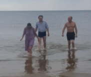 And then, on an otherwise grey rainy day in the Bay of Riga, where you have to walk out a very long way to get to any depth of water, we baptized VIKTOR, a carpenter specializing in restoration of wooden window frames, and his fair lady INA: