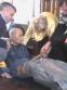 Video at https://youtu.be/d_xSUJIC0rs. You can see her holding the massive tin of cakes brother Spiro brought to pub church.