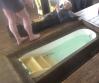 Every baptism is special but that of ROBBIE in a mould covered flat in Londonderry, Northern Ireland was especially moving. Robbie was in a gas explosion that left him with major burns especially to his face. Since then, he retreated inside himself and into depression. But then he decided to give the Bible a chance, after hearing the passing comment that George Best [Northern Ireland's most famous footballer] died a tragic death without God. And his Bible reading led him to Jesus. He's a classic case of "faith comes by hearing, and hearing by the word of God". But he found going to church hard because of being so self-conscious about his appearance and didn't find churches very interested in someone who wasn't going to attend them very much. And then the Lord led him to us through "Church in a Pub" YouTube videos of our meetings. Our many phone chats and messages resulted in making a quick trip to baptize him. He has been radically changed by the Gospel. He's quit some bad habits and is getting more confident generally. The water was poured in his bathtub ready for our arrival. It's a rough neighbourhood and the flat above has flooded his, so most of his ceiling lights don't work and there is mould and water stains on the walls from the flat above. He has lacked confidence to even try to get the landlord to fix it, but he is growing in confidence by the day. Robbie was super serious about his baptism, he got a T shirt he'd seen that says Jesus our only Hope, and wanted it videoed and the pictures to be shared to show to the world that he did it and to encourage others to not think they're not good enough. Unfortunately, as it was pretty much pitch dark it didn't come out well, but with his full permission here are some stills:
