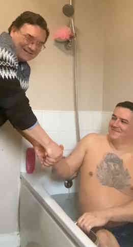 And so, the message spread to ALISON and her brother STEVE in Northern Ireland. After a lot of chats, we went there and baptized them. So lovely that a brother and sister in the flesh who are now brother and sister in the Lord Jesus. You just couldn't find nicer, more humble, more genuine seekers for the Lord Jesus. Just couldn't. What lovely people. They had been Catholics, and Steve still has a big tattoo of Jesus on his chest, but as ever, churchianity doesn't answer questions. They suffered several suicides in the family, addiction problems and the rest. And they were the two who turned to God in spirit and truth. Alison prays and reads daily and was just so excited to have the chance to be baptized in her own home.